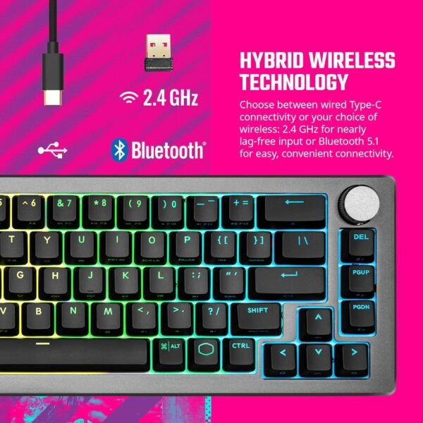 Cooler Master CK721 RGB Mechanical Gaming Keyboard β Model CK-721-GKTL1-US, 65% Layout, Blue Switches, Hybrid Wireless (Bluetooth/2.4GHz), USB-C, Black