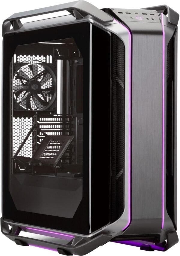 The COSMOS C700M is Cooler Master’s flagship full tower chassis, designed for maximum flexibility, premium aesthetics, and high-performance hardware. It features a curved tempered glass side panel, addressable RGB lighting, and a highly versatile internal layout that supports conventional, chimney, inverse, or fully customized configurations. With aluminum panels, integrated cable covers, and support for vertical GPU mounting via included riser cable, it’s built for creators and enthusiasts who demand the best.