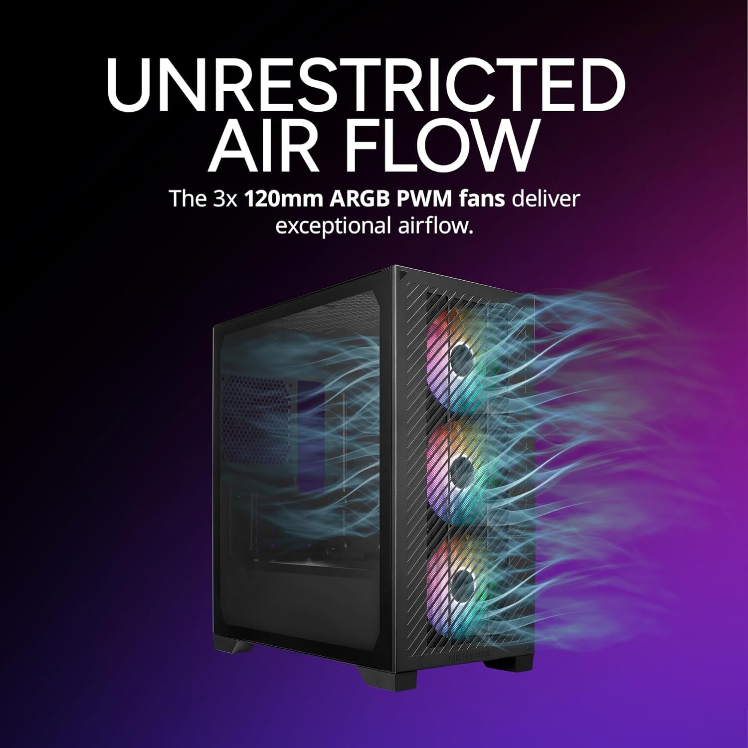 🌈 3× 120mm ARGB Fans – Pre-installed for airflow and lighting