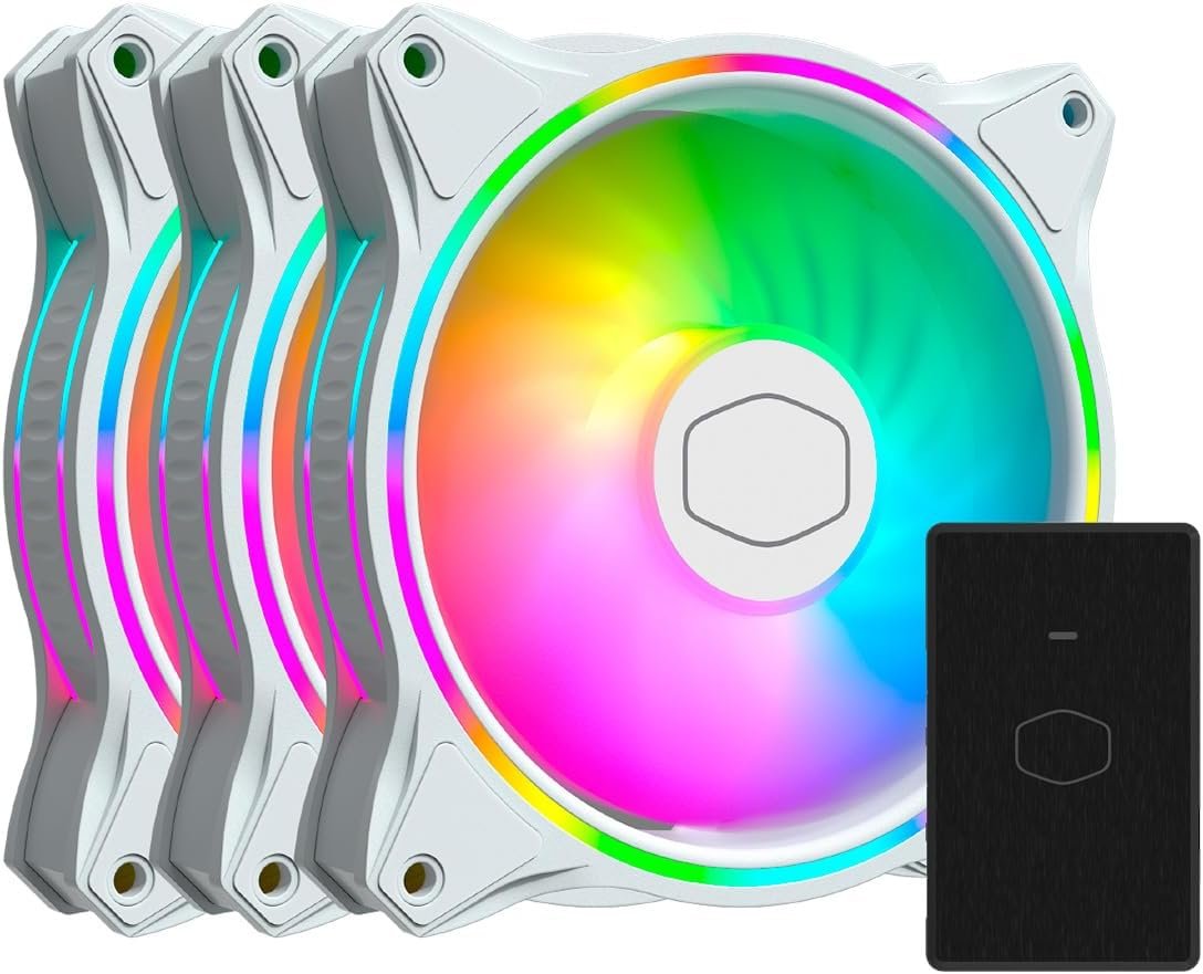 Cooler Master MasterFan MF120 Halo White Edition 3in1 – Duo-Ring ARGB 3-Pin Fan Kit, 24 Addressable LEDs, 120mm PWM Static Pressure Fans with Vibration Absorbing Pads