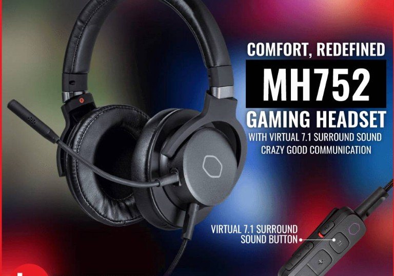 Cooler Master MH752 Gaming Headset, Virtual 7.1 Surround Sound, Plush Earcups, Omni-Directional Boom Mic, USB + 3.5mm Connectivity, Black