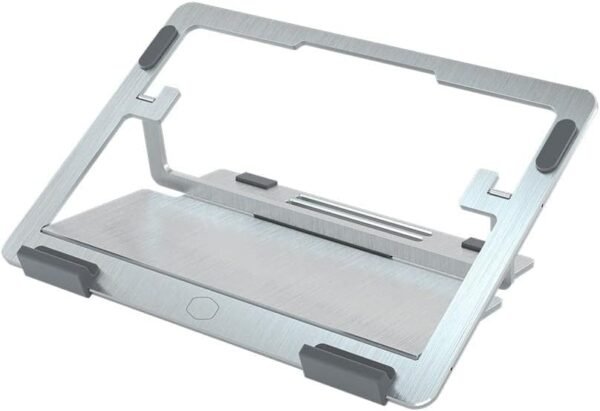 The Cooler Master ErgoStand Air Silver is a passive laptop cooling stand designed for portability, comfort, and thermal efficiency. Crafted from lightweight aluminum alloy, it features a hollow frame structure that enhances airflow while supporting ergonomic posture. Its slim, foldable design makes it ideal for mobile professionals and minimalist workspaces.