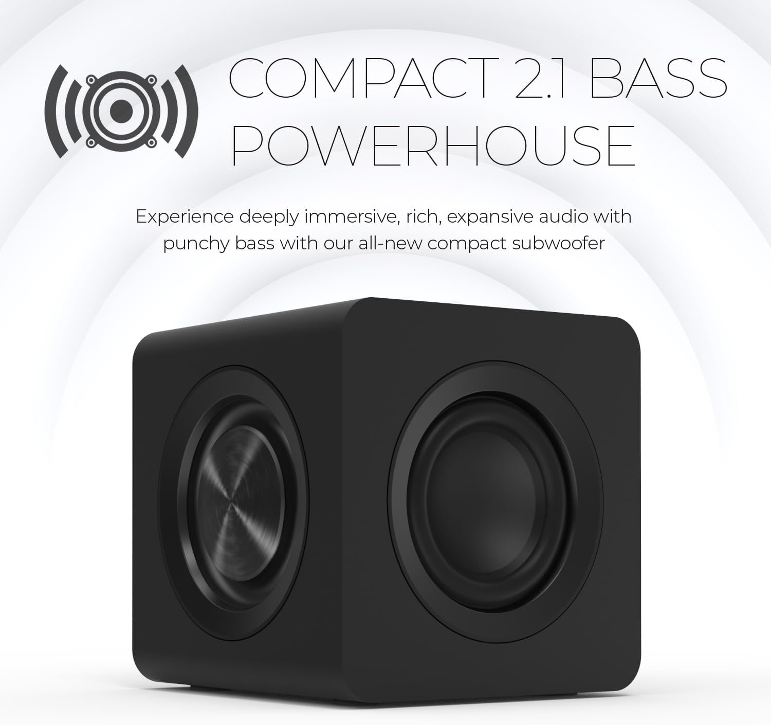➀ Desktop setups needing compact 2.1 speakers