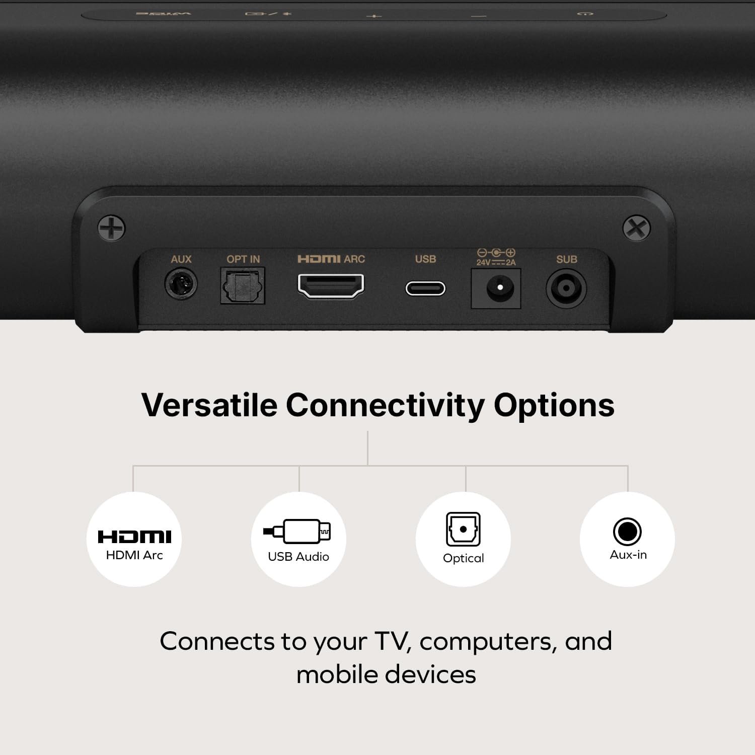 | Connectivity | HDMI ARC, Optical, AUXβin, Bluetooth 5.0, USBβC |