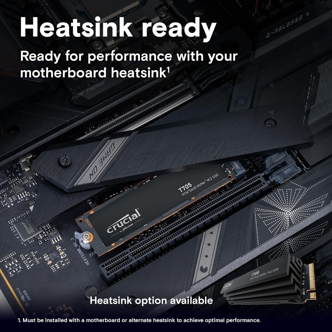 Upgrade to Crucial T705 SSD with heatsink and unlock next-gen speed with reliable cooling.