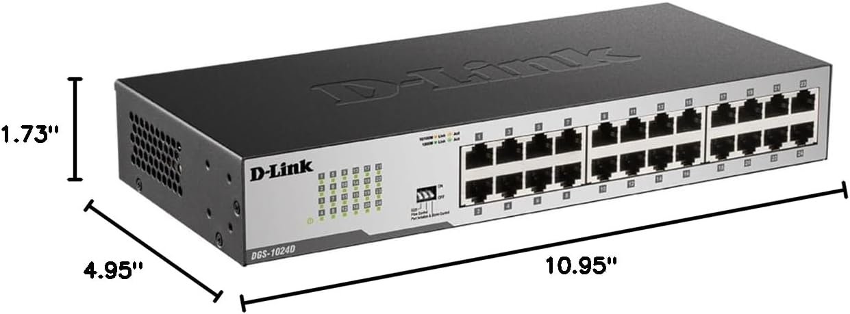 D-Link DGS-1024D 24-Port 10/100/1000Mbps Unmanaged Gigabit Desktop Switch – Metal Housing, Rackmountable, Fanless Design