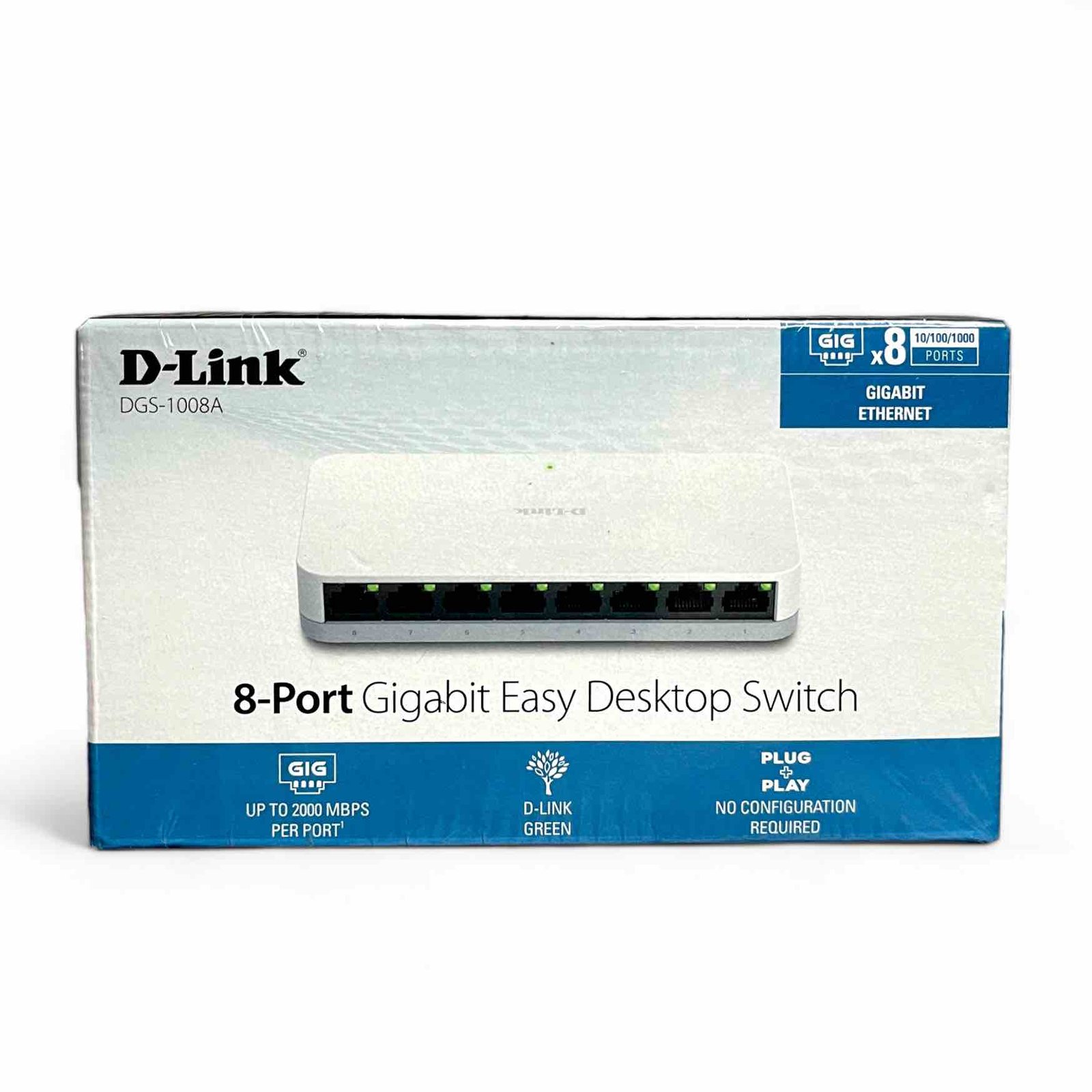 D-Link DGS-1008A 8-Port 10/100/1000Mbps Unmanaged Gigabit Desktop Switch β Fanless, Energy-Saving, QoS-Enabled
