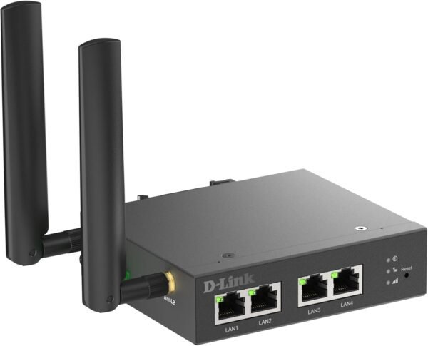 D-Link DWM-314-T 4G LTE Multi-Connect Industrial VPN Modem/Router – Cat.4 LTE, 4 Fast Ethernet LAN Ports, Nano SIM slot, rugged steel casing