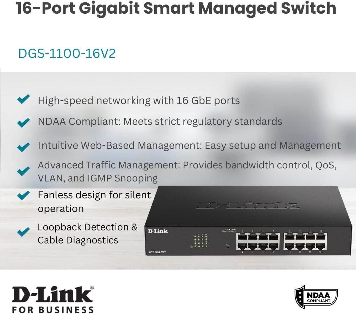 Enhance your SMB network with smart Gigabit management — choose the D-Link DGS-1100-16V2 today.