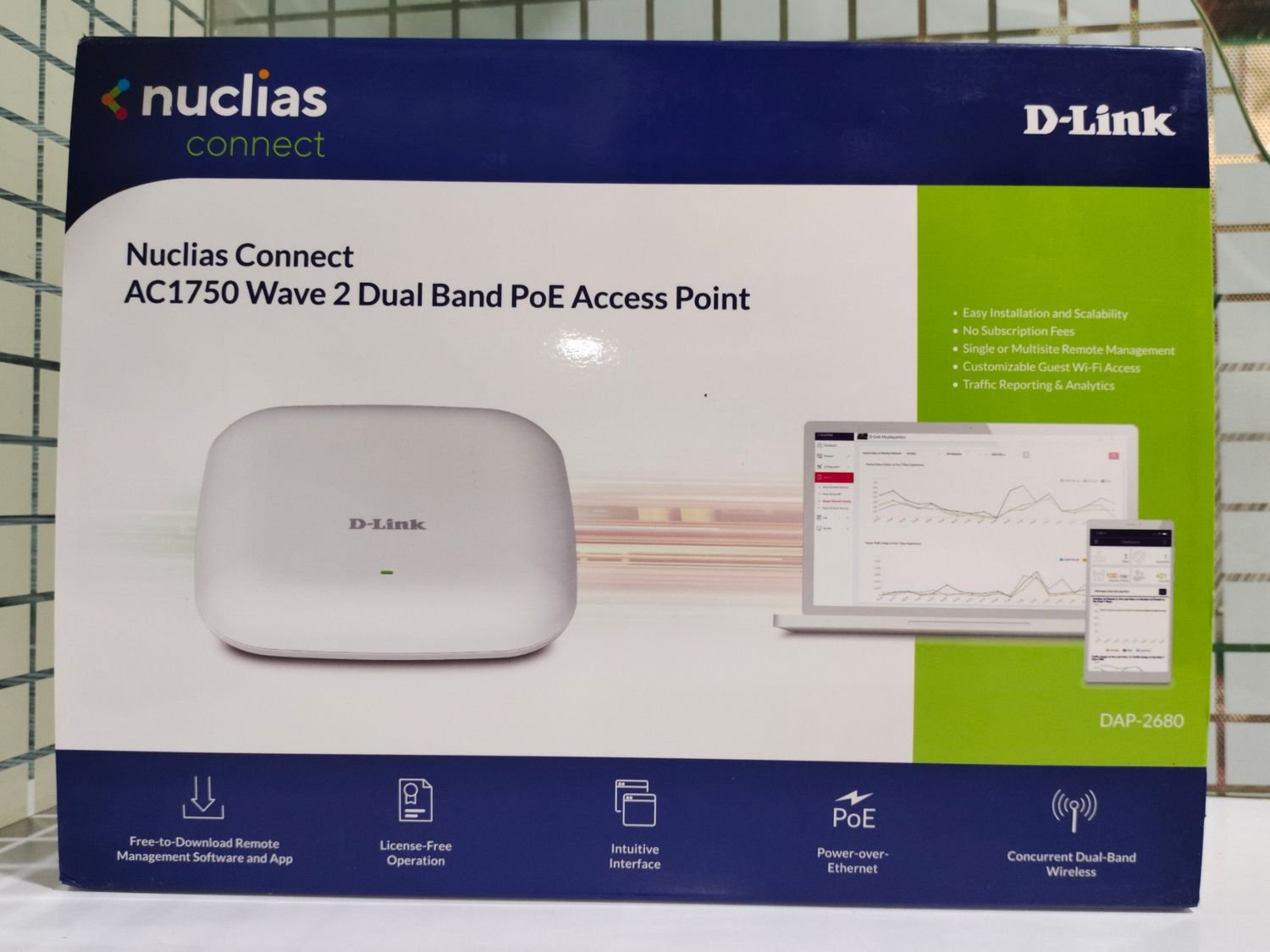 D-Link DAP-2680 Nuclias Connect Wireless Access Point – Dual-Band AC1750 Wave 2, PoE, MU-MIMO, Centralized Management