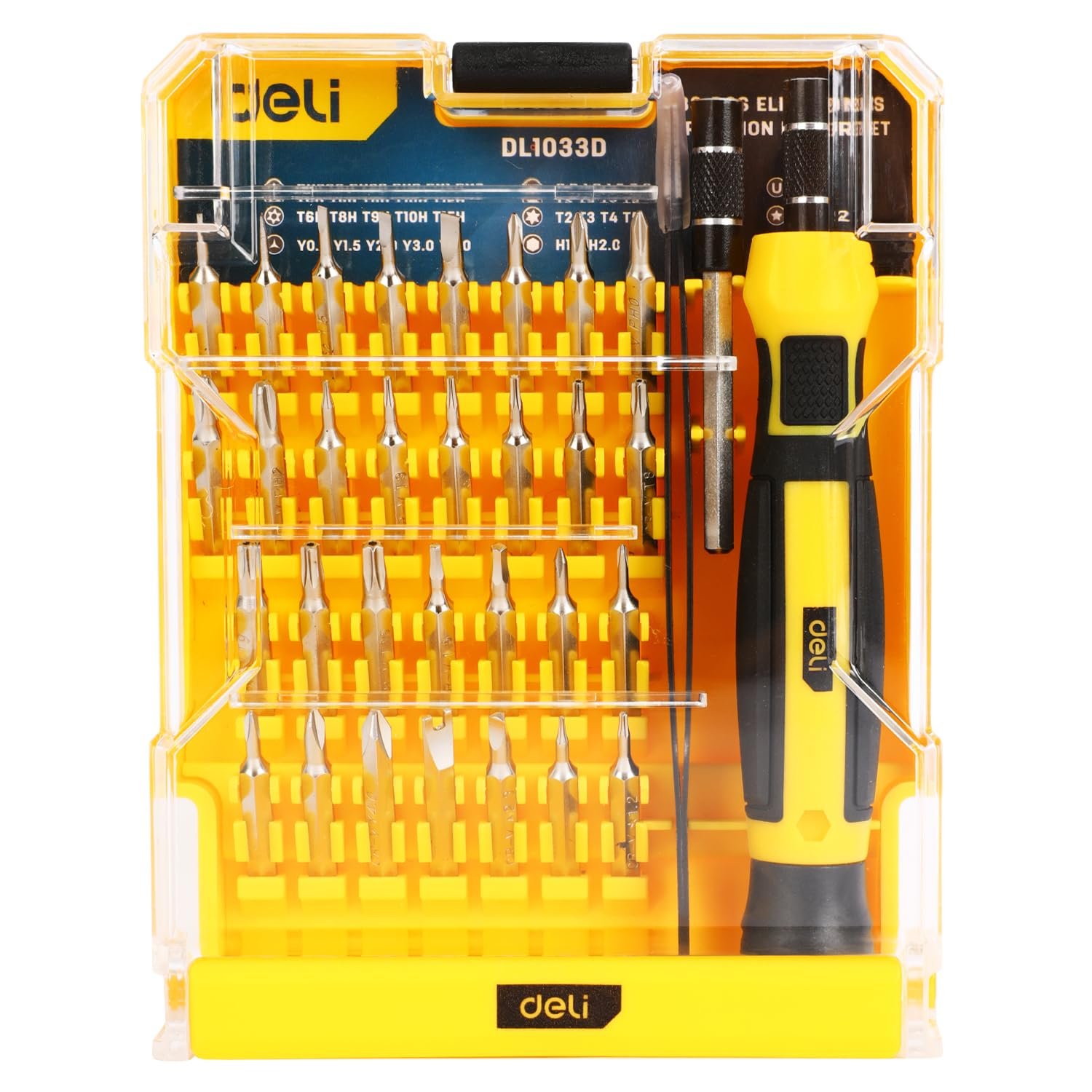 Deli DL1033D 33-Piece Electronics Precision Repair Kit β Magnetic Cr-V Bits, Anti-Slip Handle, Compact Storage Case