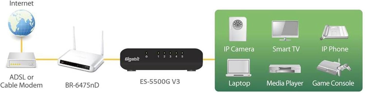 EDIMAX ES-5500G V3 – 5-Port Gigabit Desktop Switch, USB Powered, Energy Efficient, Unmanaged