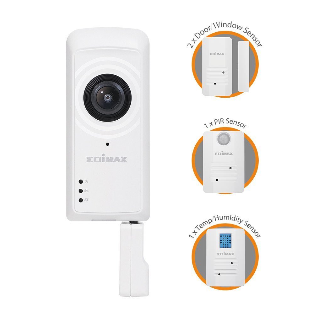 EDIMAX IC-5170SC Home Automation – HD Wi-Fi Camera with 180° Panoramic View, PIR Motion Sensor, Temperature & Humidity Monitoring, and Door/Window Sensors