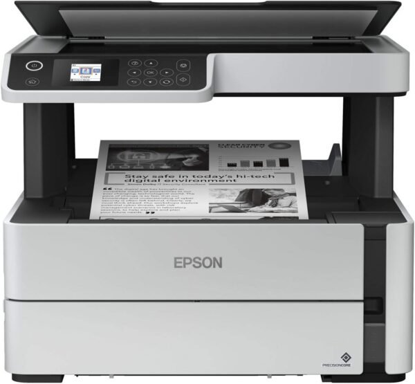The Epson EcoTank Monochrome M2140 is a compact all-in-one printer built for high-volume black-and-white printing. Powered by PrecisionCore technology, it delivers fast, laser-quality output with ultra-low running costs. Its integrated tank design supports spill-free refilling and high-yield pigment ink bottles, making it ideal for home offices and small businesses seeking reliable, cost-efficient performance.