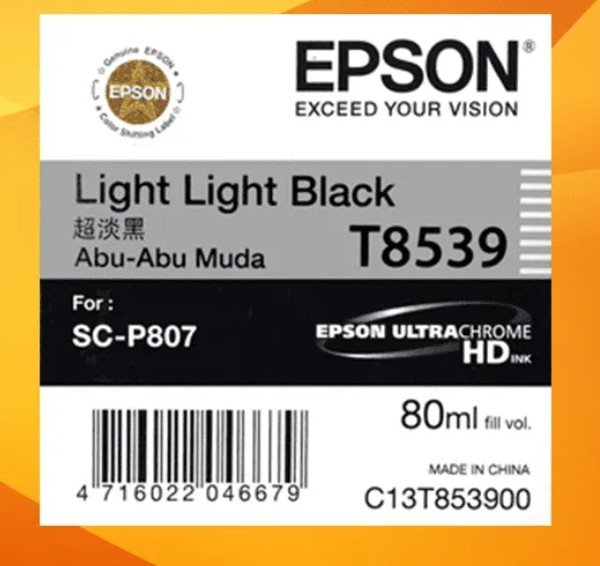 Epson C13T853900 Light Light Black Ink Cartridge (T853 Series), Genuine 80ml UltraChrome HD Pigment Ink for SureColor SC-P807 A2+ Printer