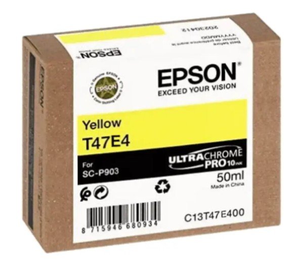 Epson C13T47E400 Yellow Ink Cartridge (T47E Series), Genuine 50ml UltraChrome PRO10 Pigment Ink for SureColor SC-P903 A2 Printer