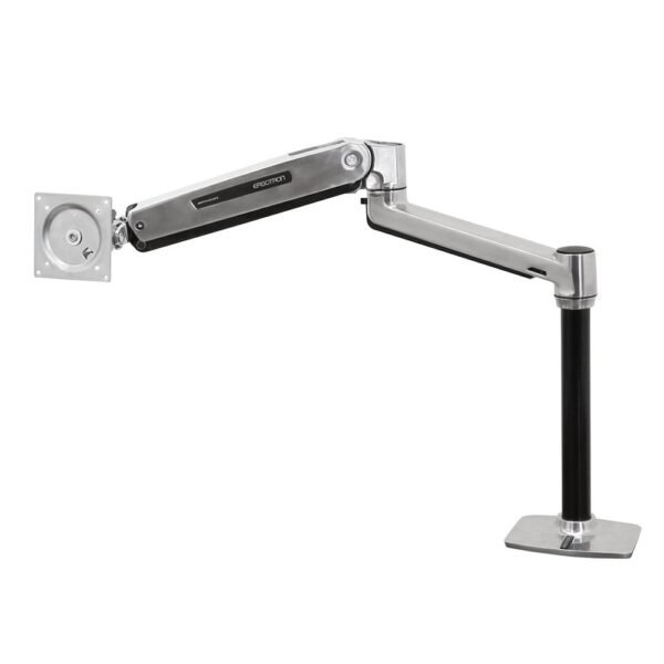 Ergotron 45-384-026 LX HD Sit-Stand Desk Mount LCD Arm โ Polished Aluminum, supports large monitors and all-in-one PCs up to 30 lbs, enables sit-stand flexibility with vertical lift and full articulation, compatible with VESA mounts, includes desk clamp and grommet options
