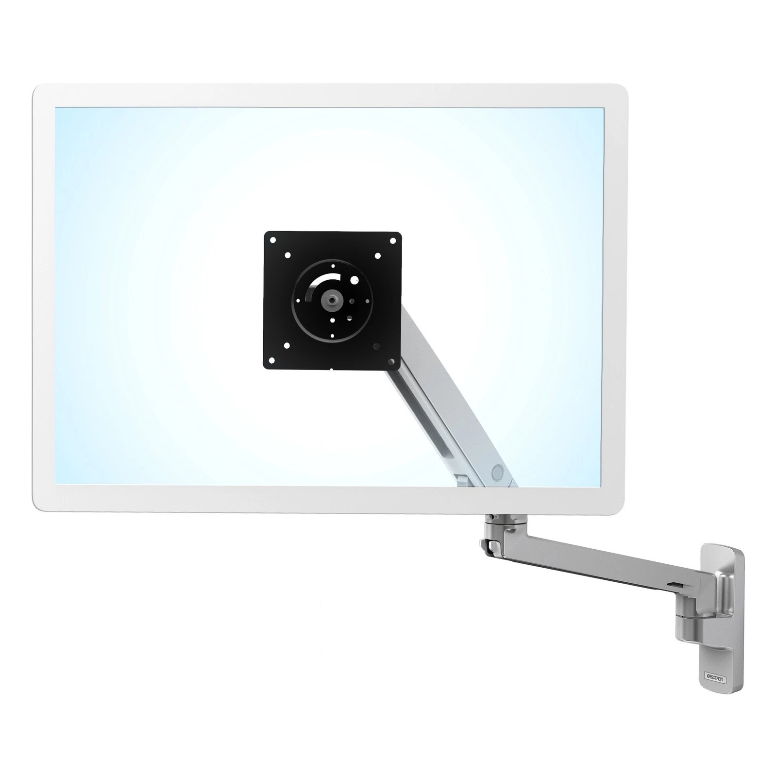Ergotron 45-505-026 MXV Wall Monitor Arm โ Polished Aluminum, supports monitors up to 34″, mounts directly to wall surface, enables full motion with tilt, pan, and rotation, designed for lightweight displays and compact environments, compatible with VESA mounts