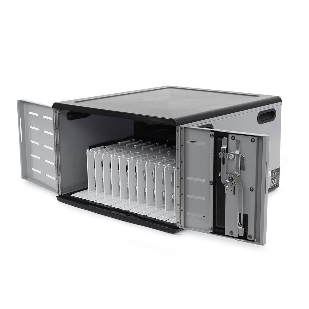 The Ergotron Zip12 Desktop Charging Cabinet (DM12-1012-5) provides a secure, space-saving solution for charging and storing up to 12 devices on a tabletop or counter. Tailored for Chinaβs electrical standards, it supports tablets, Chromebooks, and laptops up to 14β³. With adjustable dividers, integrated cable management, and a locking front door, this cabinet is ideal for education, healthcare, and shared IT environments where floor space is limited.