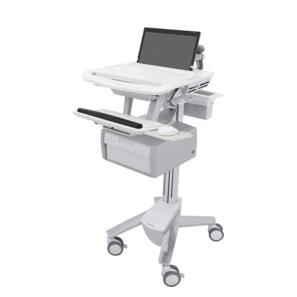 Ergotron SV43-11B0-0 StyleViewยฎ Laptop Cart with Tall Drawer โ Medical-grade mobile cart with sit-stand height adjustment, tall lockable drawer, and ventilated laptop compartment
