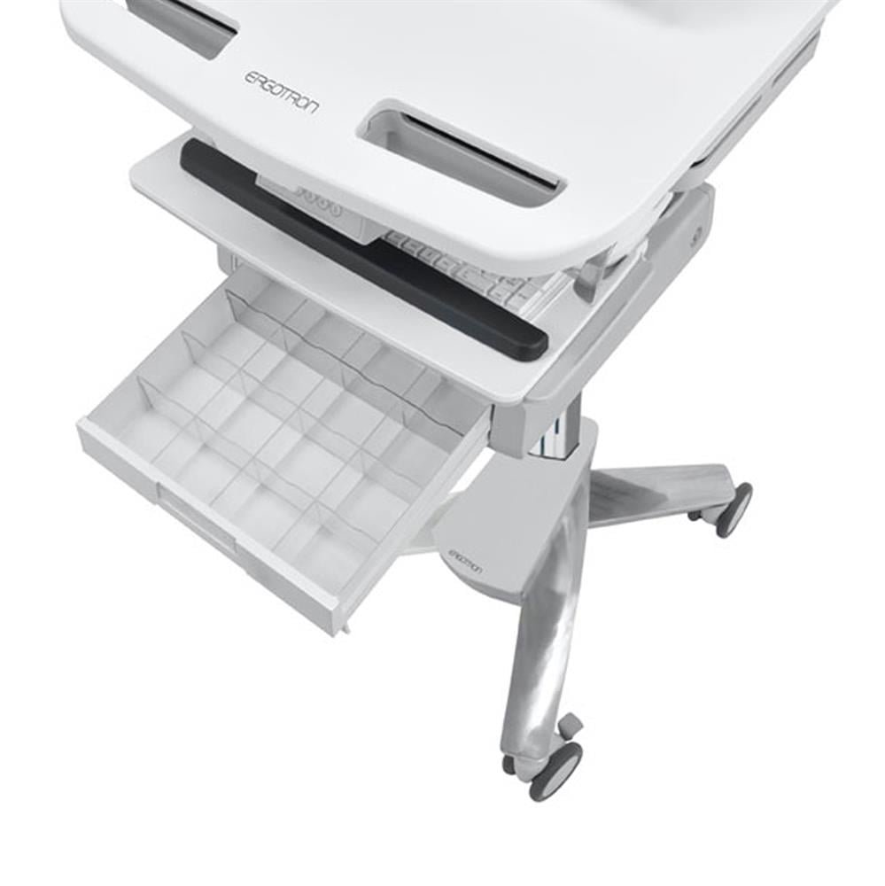 The Ergotron SV43-1210-0 StyleViewยฎ Cart with LCD Arm and 1 Drawer is a secure, ergonomic mobile workstation designed for healthcare environments. It features a height-adjustable LCD arm with tilt and pan functionality, a lockable drawer for medication or supplies, and full sit-stand range. Ideal for clinicians who need flexible display access, secure storage, and mobility during EMR workflows and point-of-care tasks.