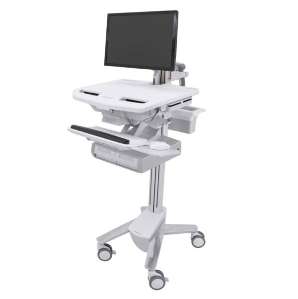 Ergotron SV43-12A0-0 StyleViewยฎ Cart with LCD Arm and Double Drawer โ Medical-grade mobile cart with sit-stand height adjustment, LCD arm with tilt/pan, and dual lockable drawers for secure storage