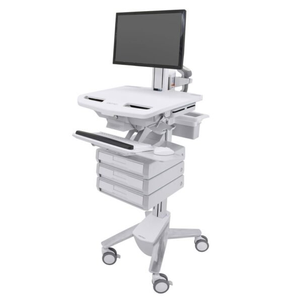 Ergotron SV43-1330-0 StyleViewยฎ Cart with LCD Pivot and 3 Drawers โ Medical-grade mobile cart with sit-stand height adjustment, LCD pivot mount, and triple lockable drawers for secure storage