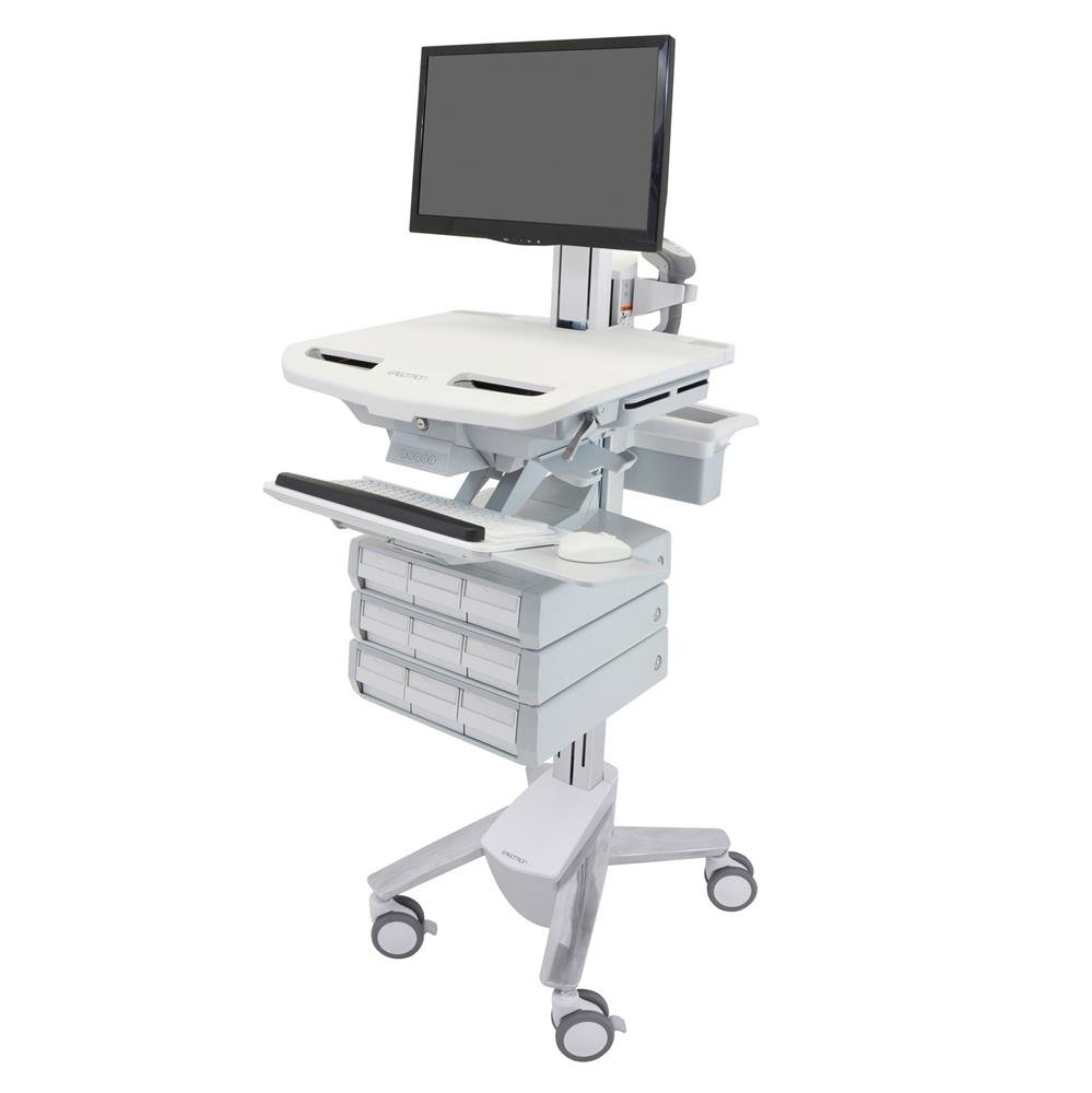 Ergotron SV43-1390-0 StyleViewยฎ Cart with LCD Pivot and 9 Drawers โ Medical-grade mobile cart with sit-stand height adjustment, LCD pivot mount, and nine lockable drawers for high-volume secure storage