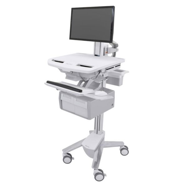 Ergotron SV43-13C0-0 StyleViewยฎ Cart with LCD Pivot and Tall Double Drawer โ Medical-grade mobile cart with sit-stand height adjustment, LCD pivot mount, and two tall lockable drawers for oversized secure storage