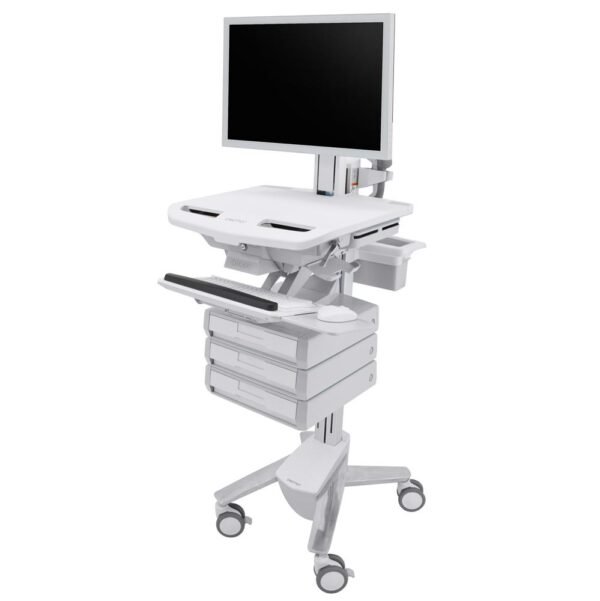 Ergotron SV43-2530-0 StyleViewยฎ Medication Cart with HD Pivot and 3 Drawers โ Medical-grade mobile cart with sit-stand height adjustment, HD pivot display mount, and three lockable drawers for secure medication storage