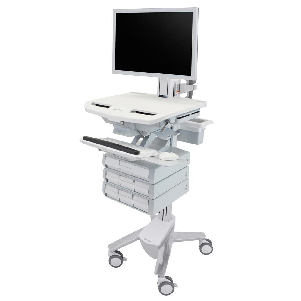 Ergotron SV43-2570-0 StyleViewยฎ Medication Cart with HD Pivot and 7 Drawers โ€“ Medical-grade mobile cart with sit-stand height adjustment, HD pivot display mount, and seven lockable drawers for secure, high-volume medication storage