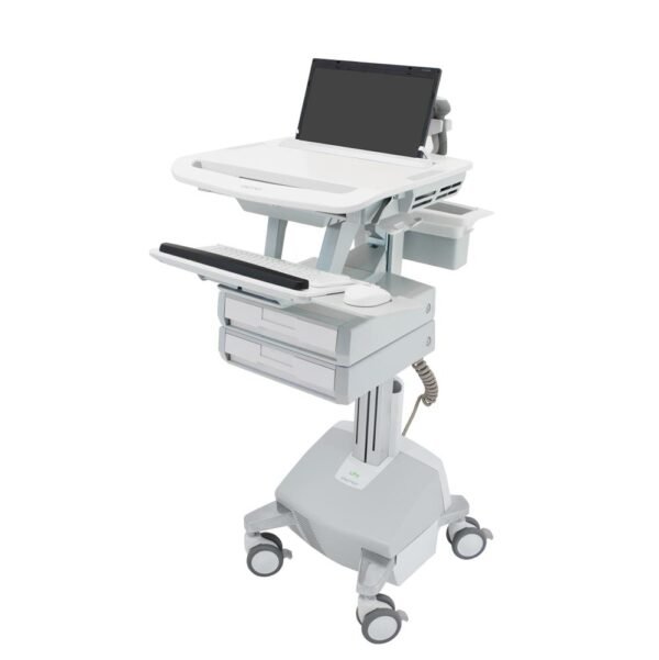 The Ergotron SV44-1122-B StyleView Laptop Cart is a LiFe-powered mobile workstation engineered for secure medication delivery and clinical documentation in Indian healthcare environments. With two locking drawers and a height-adjustable laptop platform, it supports ergonomic workflows and reliable mobility across patient care settings. Its compact design and durable build make it ideal for hospitals and clinics requiring secure, flexible workstation solutions.