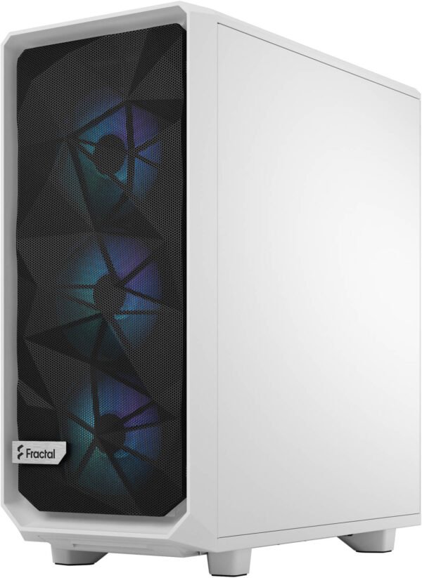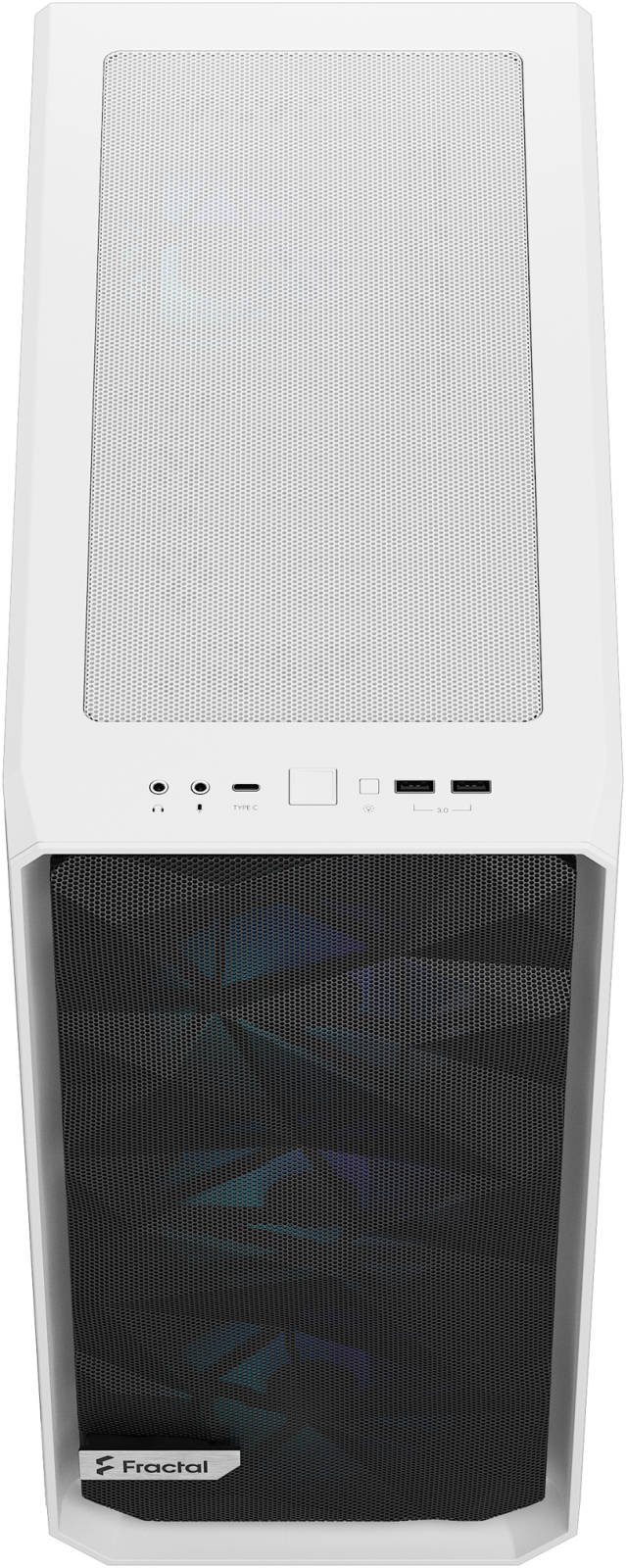 Fractal Design Meshify 2 Compact RGB White TG Clear Tint – FD‑C‑MES2C‑08, ATX mid‑tower case with tempered glass side panel, dynamic RGB fans, aerodynamic mesh front, and versatile cooling support