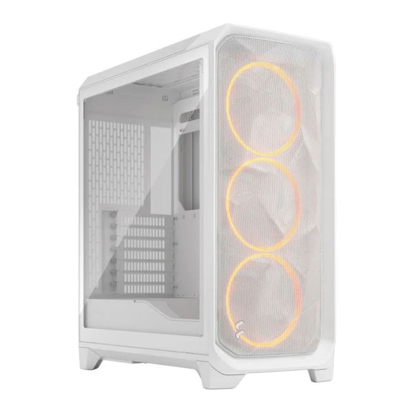 The Meshify 3 White RGB delivers Fractal’s renowned airflow engineering with modern aesthetics, featuring a bold mesh front panel, tempered glass side panel, and preinstalled RGB fans. Built for performance‑focused builders, it supports large GPUs, multiple radiators, and advanced cable management, making it ideal for gaming and showcase builds that demand cooling efficiency and vibrant lighting.