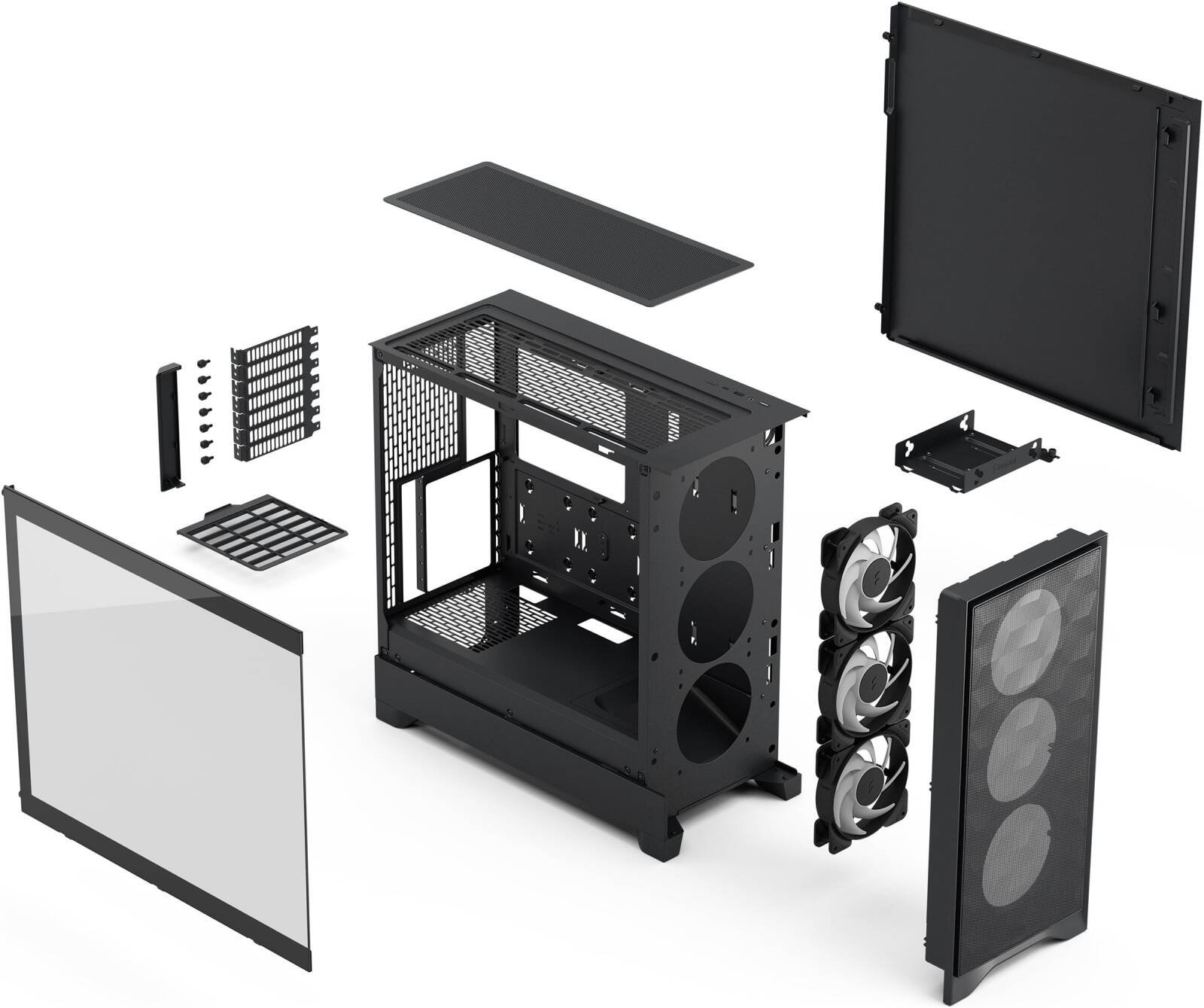 🌀 Pre-Installed Fans – Three swept-blade fans included for strong cooling