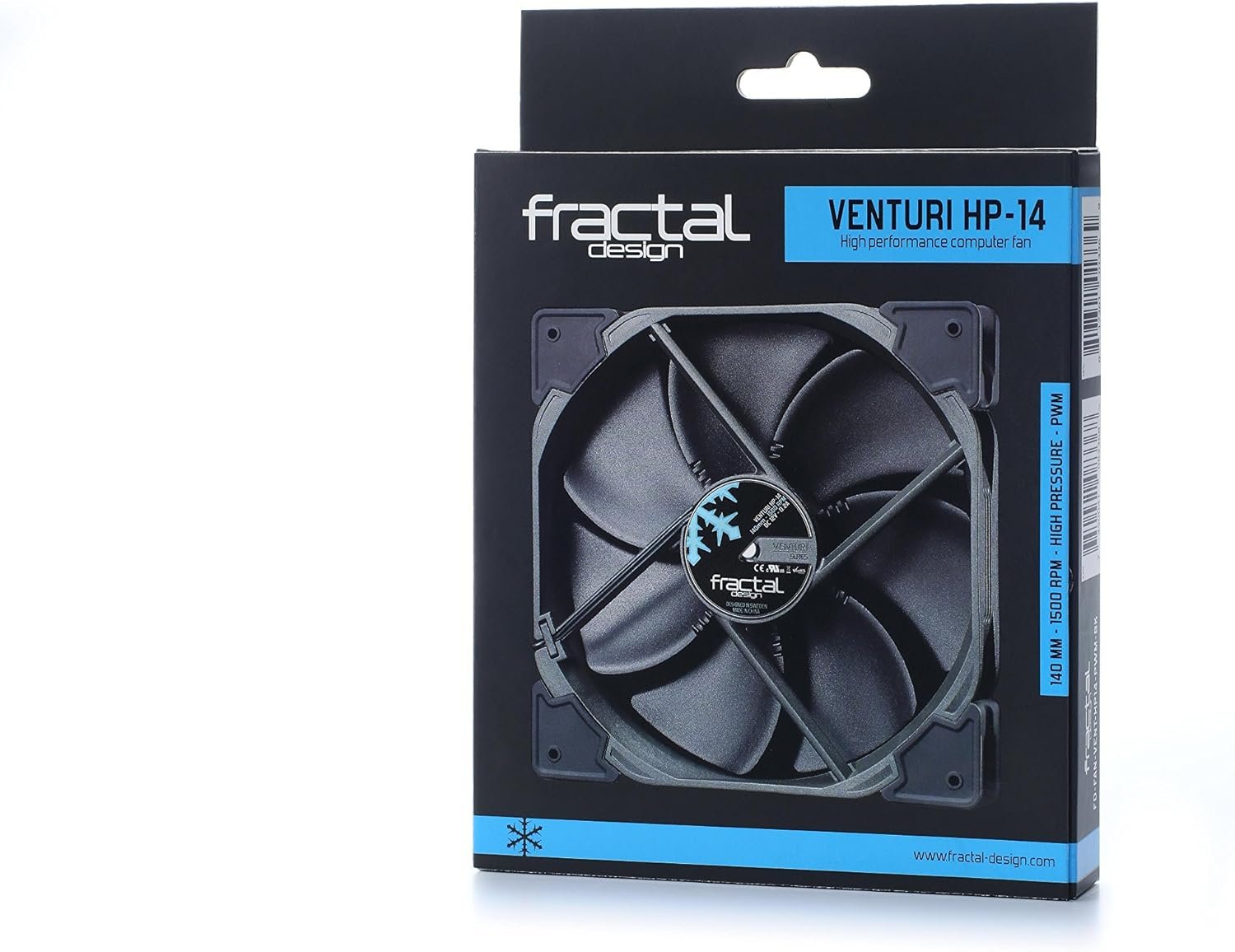 The Fractal Design Venturi HP-14 PWM is a 140 mm high-pressure fan optimized for use in restrictive airflow scenarios such as large heatsinks and radiators. Built with true Fluid Dynamic Bearings for silent operation and long lifespan, it features counter-balanced magnets to reduce axial tension and integrated vibration-dampening corners. With PWM control for precise speed adjustment, the Venturi HP-14 delivers strong static pressure and reliable cooling performance for demanding builds.