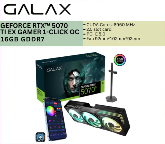 Push your gaming and creative boundaries — power up with the GALAX RTX 5070 Ti EX Gamer 1‑Click OC today.