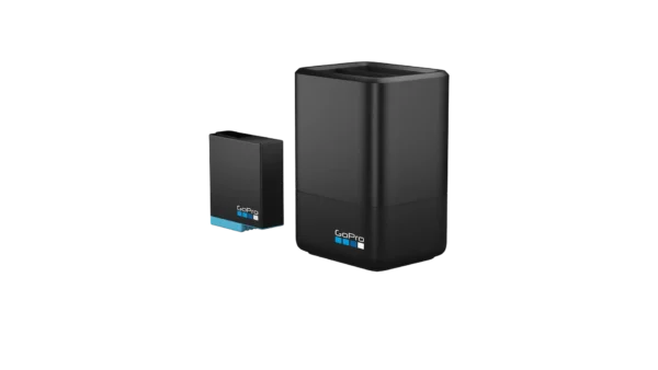 The GoPro AJDBD-001 Dual Battery Charger + Battery Kit is designed to keep your HERO8, HERO7, or HERO6 Black powered and ready. It features a compact dual-slot USB-C charger that charges two GoPro batteries simultaneously, with LED indicators to show charging status. The included 1220mAh lithium-ion battery serves as a reliable backup for extended shooting sessions. Ideal for travel, sports, and professional use.