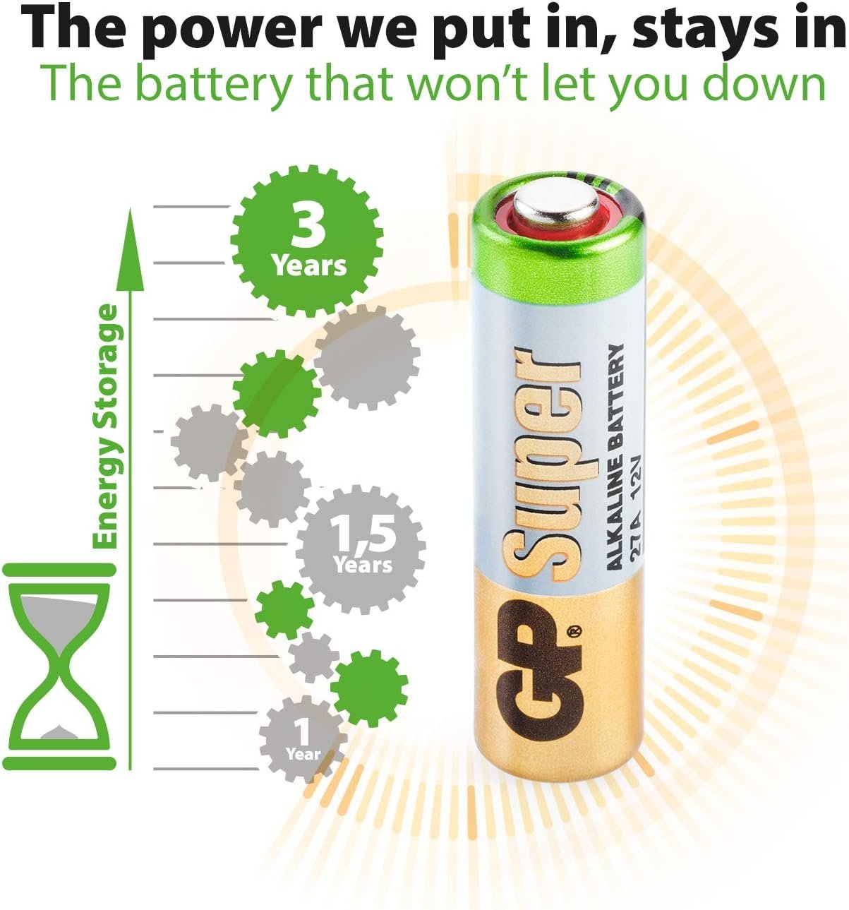 Ensure consistent performance in your remotes and security devices with GP High Voltage 27A batteries