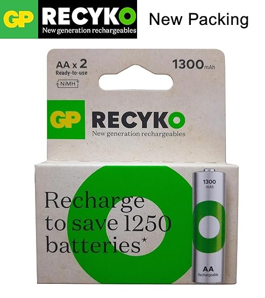 GP ReCyko AA rechargeable batteries are designed to provide sustainable, reusable energy for everyday devices. With a capacity of 1300mAh, they are ideal for low to medium drain electronics such as remote controls, cordless phones, toys, and household gadgets. Built to reduce waste and deliver consistent performance, they are a practical alternative to disposable batteries.