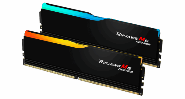The G.SKILL Ripjaws M5 Neo RGB F5-6000J3636F16GX2-RM5NRK is a 32GB (2?16GB) DDR5 desktop memory kit tailored for AMD Ryzen 7000 Series systems. Featuring 6000 MT/s speed and CL36 latency, it is optimized with AMD EXPO (Extended Profiles for Overclocking) to deliver effortless, stable performance on AMD AM5 platforms. With a low-profile matte black aluminum heatspreader and 8-zone customizable RGB lighting, it’s perfect for performance and style in modern builds.