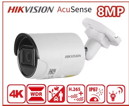 Hikvision DS-2CD2083G2-IU 8MP AcuSense Fixed Bullet Network Camera – 2.8mm Lens, Built-in Microphone, IP67 Rated, EXIR 2.0 Infrared