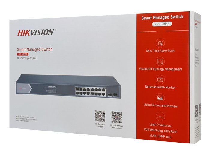Hikvision DS-3E1518P-SI Smart Managed 16-Port Gigabit PoE Switch β 16Γ RJ45 PoE, 2Γ SFP Uplink, 6kV Surge Protection, VLAN & QoS