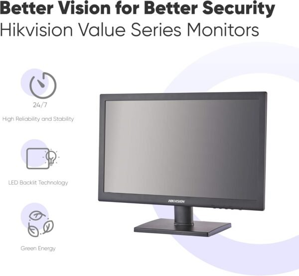 Deploy reliable HD monitoring with Hikvisionβs compact 18.5″ LED display β built for 24/7 performance.