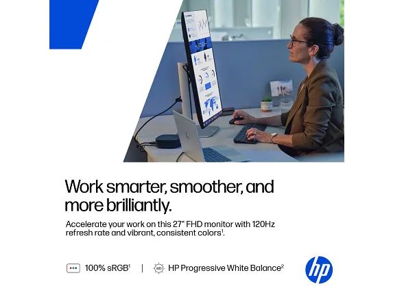 The HP S5 Pro 527pf FHD Monitor delivers a spacious 27-inch screen with crisp Full HD resolution, designed for productivity, entertainment, and everyday use. Featuring anti-glare technology, wide viewing angles, and versatile connectivity, this monitor ensures clear visuals and reliable performance for home and office environments.
