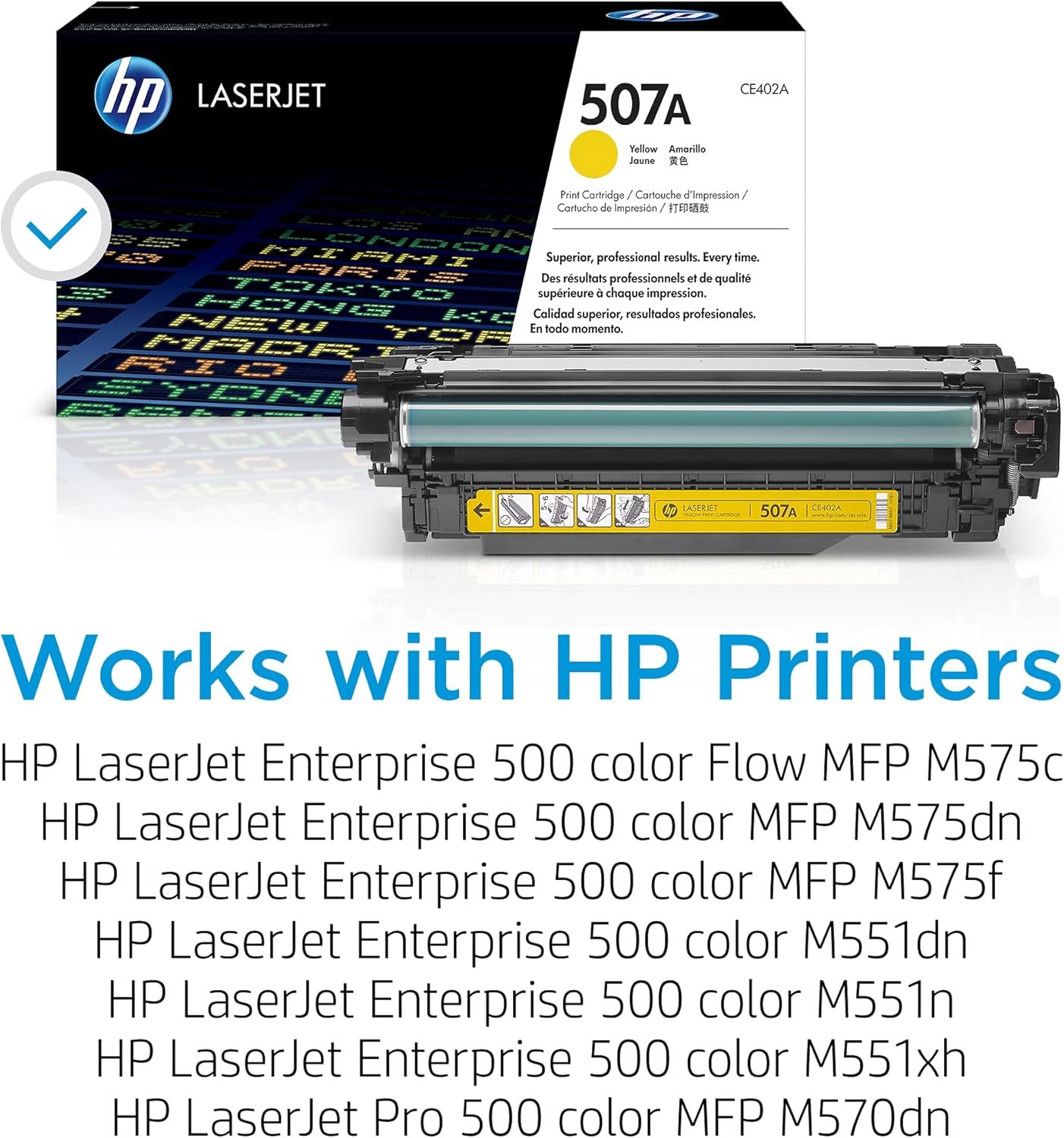HP CE402A 507A Yellow Original LaserJet Toner Cartridge – Genuine OEM, Standard Yield, Up to 6,000 Pages
