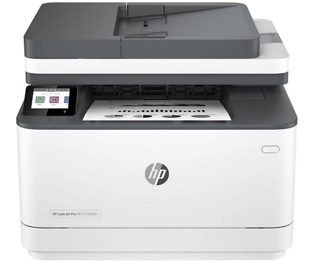 The HP LaserJet Pro MFP 3103fdw is a multifunction monochrome printer designed for users who need speed, efficiency, and flexibility in one device. With printing speeds of up to 30 pages per minute, it ensures minimal wait time for document output. The printer supports automatic duplex printing to save paper and reduce operational costs, while its 50-sheet automatic document feeder (ADF) streamlines scanning and copying of multi-page documents. Wireless connectivity via Wi-Fi enables easy printing from laptops, smartphones, and tablets, making it suitable for shared office environments or home offices. The intuitive touchscreen interface simplifies navigation and operation, while its robust build ensures long-lasting, reliable performance. With a recommended monthly page volume suitable for small to medium workloads, the 3103fdw offers professional-quality output with crisp text and clear graphics. Additional security features help protect sensitive documents and network data. Overall, the HP LaserJet Pro MFP 3103fdw is an efficient, reliable, and feature-rich printer that enhances productivity and simplifies document management.