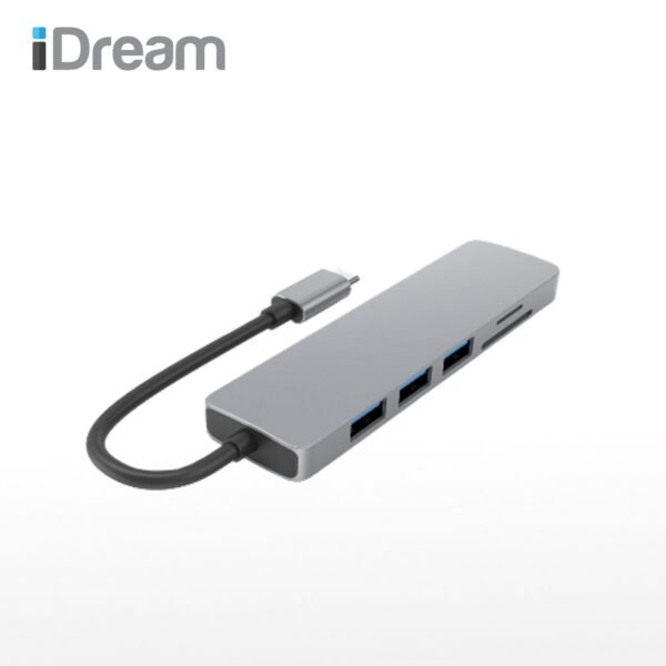 IDREAM ID6CHU3CR USB-C 6-in-1 Multiport Adapter – Includes HDMI (4K@30Hz), 3x USB (2x USB 3.0 + 1x USB 2.0), SD/TF Card Reader, Plug-and-Play