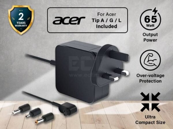 The Innergie ADP-65DW-ACER is a dedicated 65W power adapter for Acer laptops, manufactured by Delta Electronics. It delivers a stable 19V/3.42A output and features InnerShield™ protection against over-current, over-voltage, over-temperature, and short-circuiting. With a compact form factor and built-in cable, it’s ideal for daily use, travel, or replacing your original Acer charger.