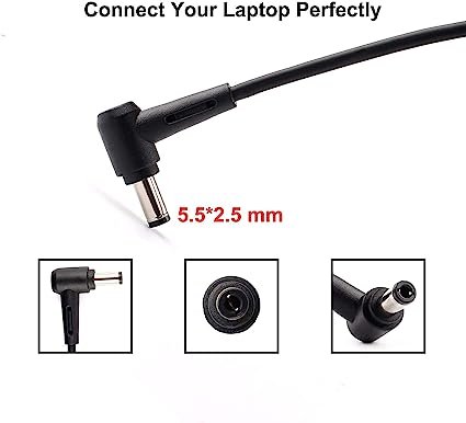 - Input Voltage: AC100-240V, Output Voltage:19V,Output current:3.42A,Total output power:65W,DC pin sizes:5.5*2.5mm.